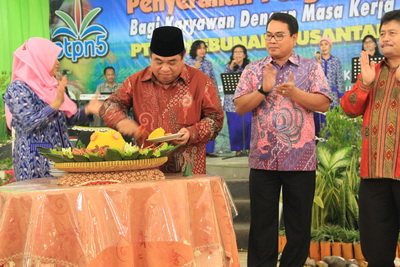 Pekanbaru – PTPN V (Persero) genap berusia 18 tahun pada hari Selasa (11/03/2014). Sejalan dengan itu, di 4 Strategic Business Unit (SBU), dilaksanakan peringatan ulang tahun ke 18 dan penyerahan Penghargaan Masa Kerja (PMK) oleh jajaran manajemen Perusahaan perkebunan kelapa sawit dan karet milik Negara tersebut. Di hari ulang tahun ini juga, berdasarkan Surat Keputusa Menteri BUMN No : SK-47/MBU/2014 tanggal 11 Maret 2014 tentang Pemberhentian dan Pengangkatan Direksi PPN V, terjadi pergantian Direktur Utama PTPN V. Fauzi Yusuf yang masa jabatannya berakhir pada 6 Maret lalu, digantikan oleh Amal Bakti Pulungan yang sebelumnya menjabat sebagai Dewan Komisaris PTPN V. Posisi Amal sendiri selanjutnya digantikan oleh Balaman Tarigan sebagai Dewan Komisaris.